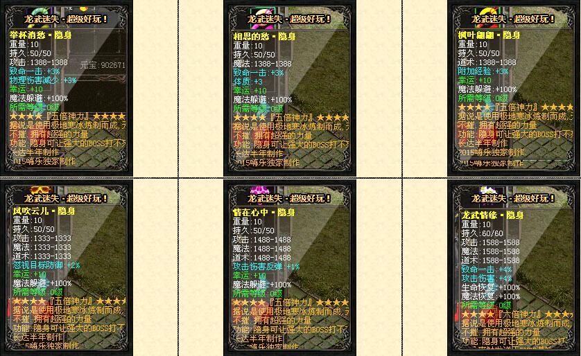 <1>. 龙武迷失,爆率给力,回收10倍,上线回收散人不花钱一样可以达到终极.3
