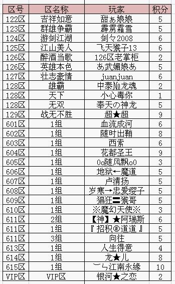 时间:2016/5/10 1:24:04 作者:兽魂迷失 来源:www.mishi8.com 查看:340 评论:0内容摘要:一些计分赛的祝福(8月6日至8月12日)。。。今天是比赛最后一天,机不可失,不容错过!截至8月11日上午9点钟在早晨,现在所有服务获得比赛积分最高的球员名单如下:魔幻魅影迷失传奇备注:601区:601地区令人敬畏,110区花好月圆602面积:18区红月亮,广播和电视明星,21江山...一些计分赛的祝福(8月6日至8月12日)。。。