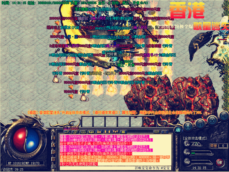 【元宝比例1:200000 点卡多送80% 网银多送100%】